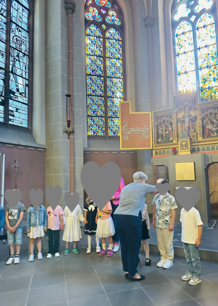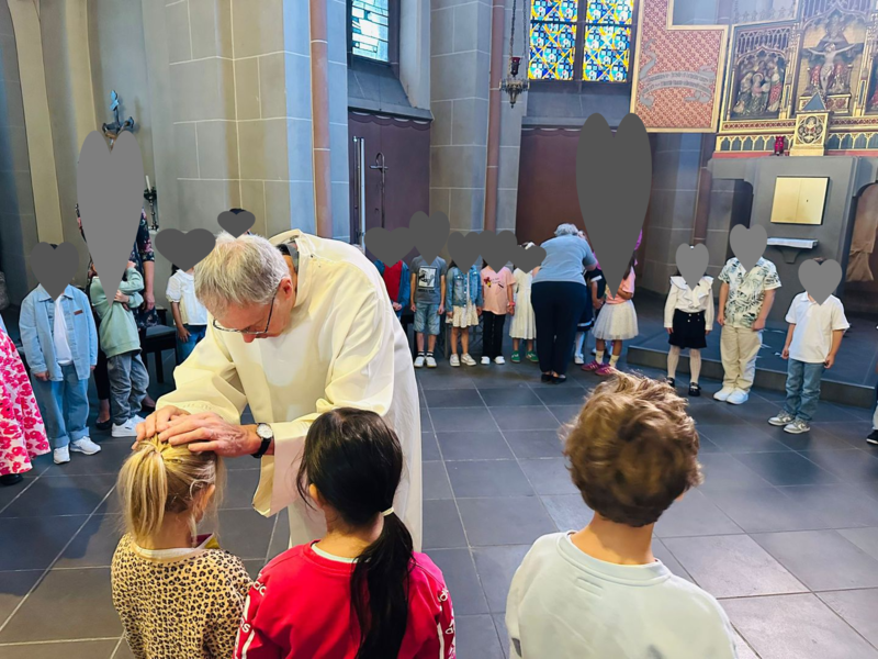 Am Mittwoch, 27.08.2025, war es endlich soweit: die neuen 1. Klassen wurden an der KGS St. Mauritius eingeschult - zum 1. Mal seit langer Zeit wird unsere Schule von drei neuen Klassen verstärkt. Die Feier begann mit einem gemeinsamen Gottesdienst in der Mauritiuskirche. Dort wurden alle neuen Schulkinder einzeln gesegnet. Weiter ging es dann in der Aula, wo die Kinder der 3. Klassen ihre neuen Mitschüler und zukünftige Paten und Patinnen mit zwei tollen Liedern begrüßten. Als nächstes wurden alle Kinder einzeln auf die Bühne gerufen und zogen dann, nach einem gemeinsamen Klassenfoto, in ihre Klassenräume, um dort ihre erste Schulstunde zu erleben. Währenddessen konnten sich Eltern, Großeltern und Bekannte mit Kaffee und Kuchen die Zeit vertreiben.
