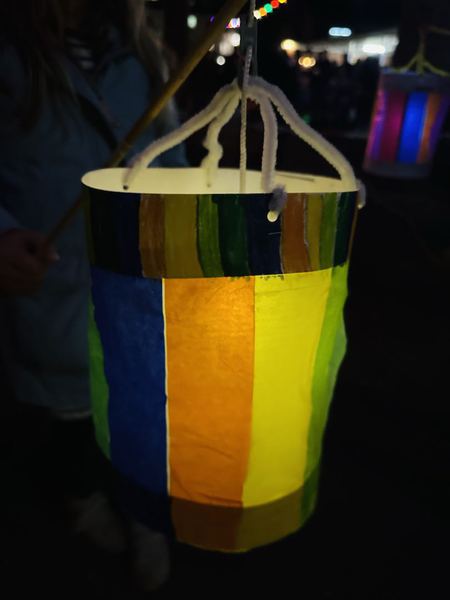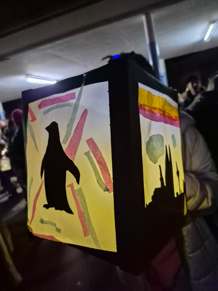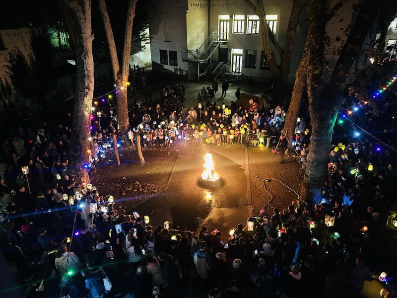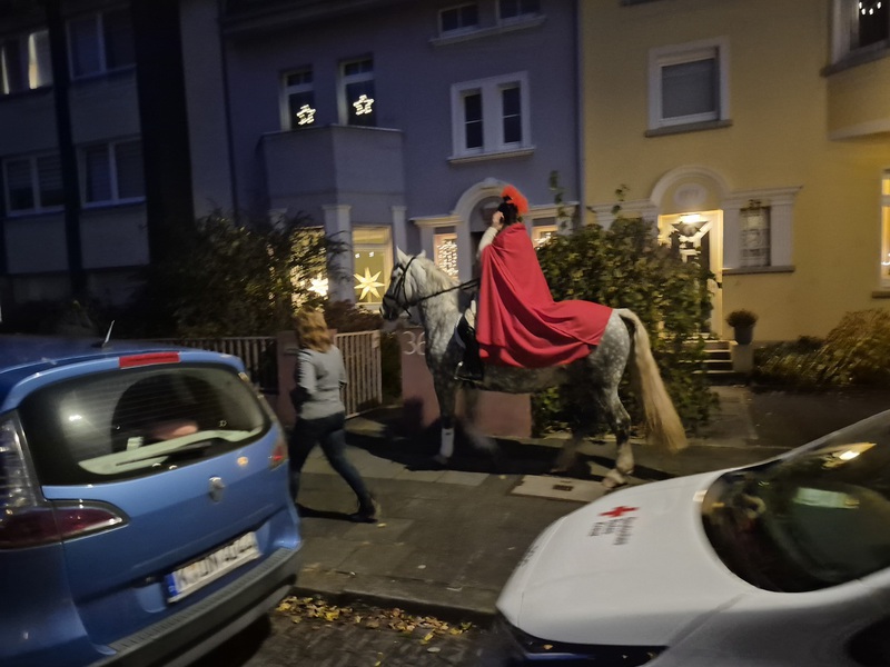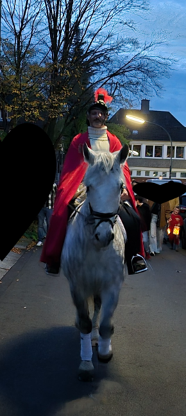 Um 17 Uhr trafen sich dann Schüler, Lehrer, Eltern und Geschwister wieder auf dem Schulhof und zogen in einem wunderschön kunterbunt-leuchtendem Zug durch Buchheim – angeführt von Sankt Martin auf einem echten Pferd und begleitet von festlicher Blasmusik. Im Anschluss wurden um das Martinsfeuer noch ein paar Lieder gesungen und zum Abschluss gab es Punsch, Glühwein und die vorbestellten Weckmänner, mit denen der Tag gemütlich ausklingen konnte.