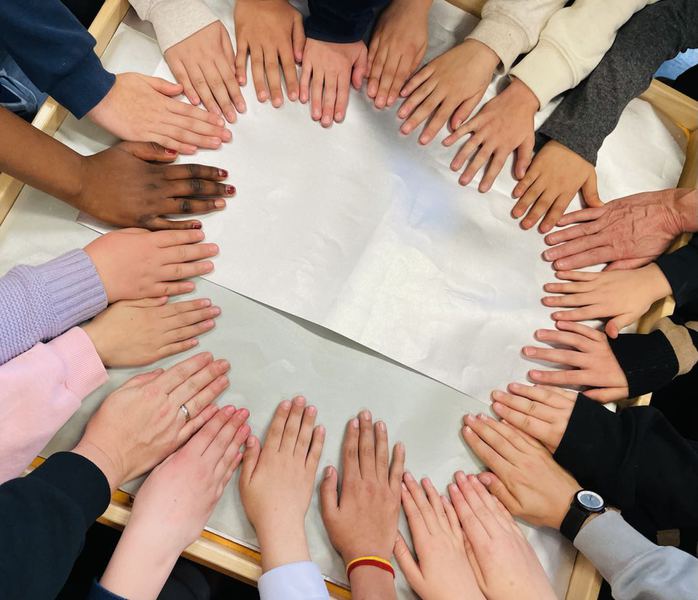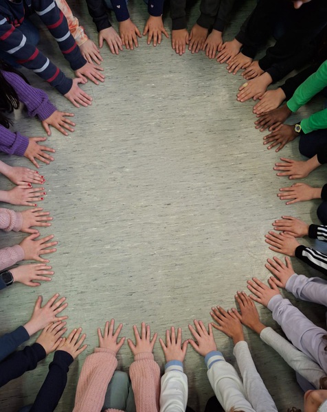 Am Freitag, 30.01.2026, wurde unser Kinderparlament von einem besonderen Menschen besucht: Herr Daniel von der Kinderpalliativstation „Zeitinsel“ in Leverkusen kam in unsere Aula und bedankte sich sehr herzlich für den Einsatz der Kinder und erklärte den Vertreterinnen und Vertretern aus allen Klassen, wofür unsere Spende vom letzten Sponsorenlauf genutzt werden wird. Er zählte die Aufgaben der Station auf und lud alle Kinder dazu ein, die Zeitinsel selbst zu besuchen. Zum Abschluss überreichte der Vorsitz des Parlaments gemeinsam mit allen Anwesenden den symbolischen Scheck über 3950,80€.